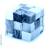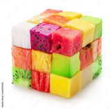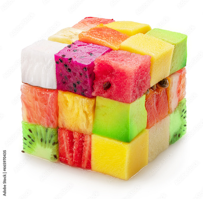 Fruit puzzle cube arranged from different fruit cubes. Dietary concept. File contains clipping path.