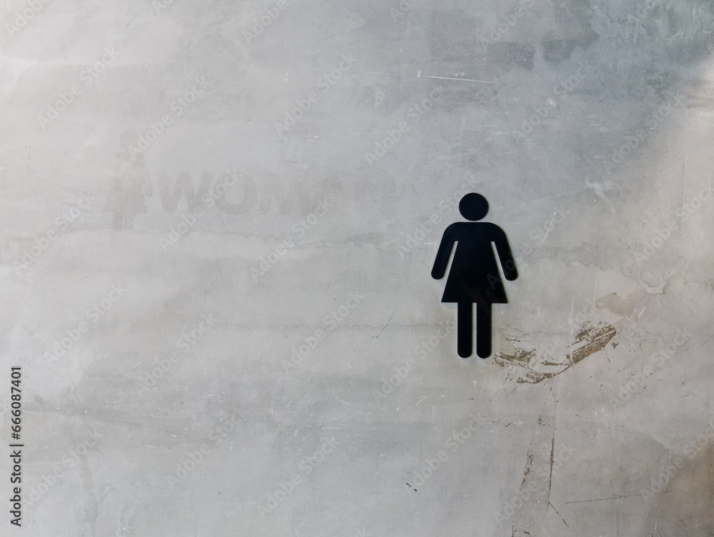 Black Women's Toilet Symbol on Grungy Concrete Wall