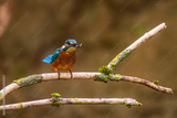 female Eurasian kingfisher (Alcedo atthis) with a fish in its beak