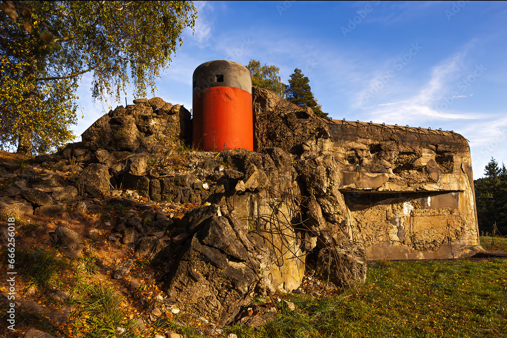 Czechoslovak Second World War fortifications at the border infantry bunker, pillbox