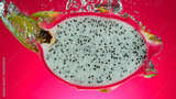 Freeze motion of falling fresh pitahaya into water
