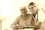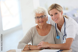 Portrait of young nurse with elderly woman