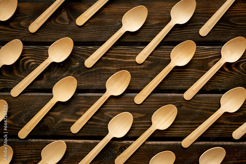 Pattern of wooden eco friendly cutlery spoons. Zero waste concept