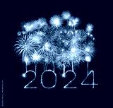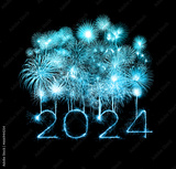2024 happy new year fireworks celebration written sparkling at night