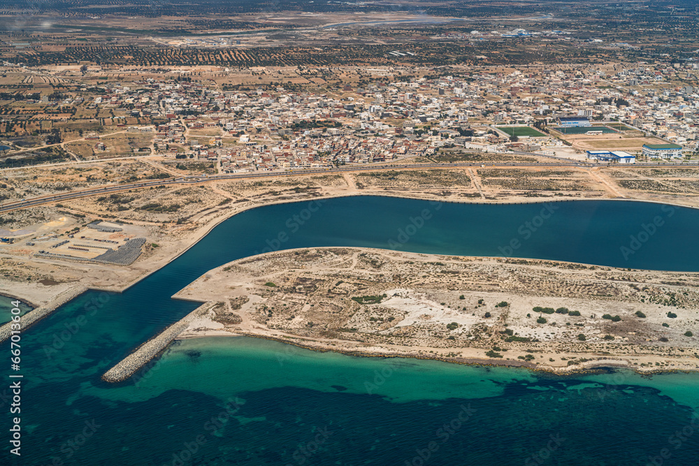 Aerial view of the Tunisian coast and the city of Mahdia.