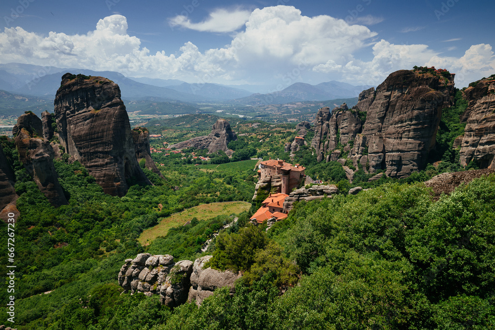 View of the Meteora monasteries. Kalambaka. Greece. UNESCO World Heritage List.