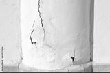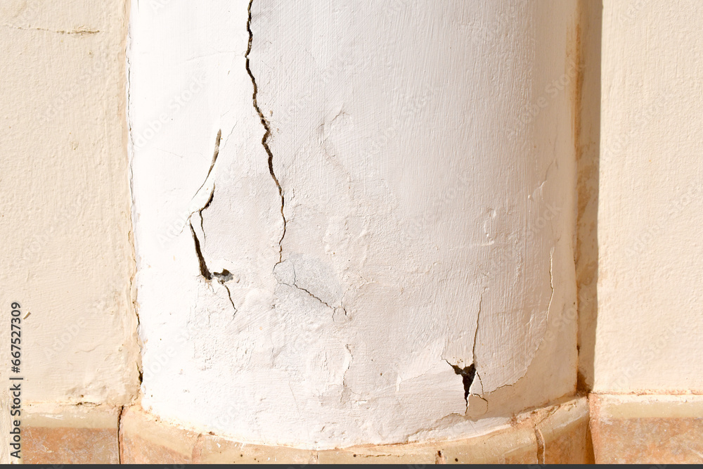 Peel paint concrete wall. Old stucco building surface texture. Leaking rain cause the wall cracked. Water damaged the wall.
