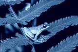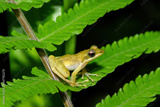 The rare and endangered Kloof frog, also known as the Natal diving frog, or Boneberg's frog (Natalobatrachus bonebergi) near a slow moving stream in a forest