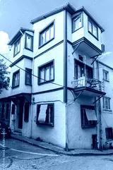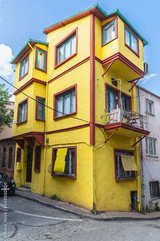 Yellow house in the historical district of Fatih Balat, Istanbul. Narrow old city streets.