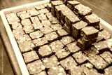 Meatloaf pieces on tray