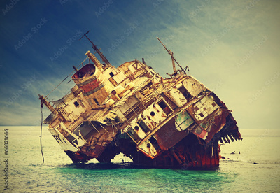 The sunken shipwreck on the reef, Egypt, vintage retro filtered.