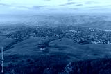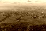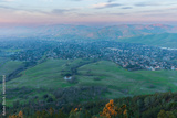 Hazy sunset over Clayton and Mitchell Canyon from Mt. Diablo State Park. Contra Costa County, California, USA.