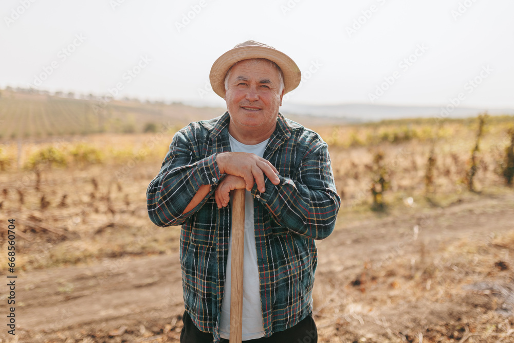Hats Off to Happiness Portrait of a Smiling Senior American Farmer in the Field. Rustic Contentment Smiling Senior Farmer's Authentic Portrait