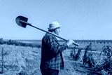 At One with the Earth An Old Farmer Takes a Moment to Stand and Reflect, Shovel Ready for His Agricultural Labors in the Field. Agricultural Mastery in 4K Senior Farmer Standing