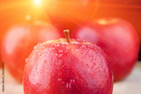 Red apple extreme closeup with flare