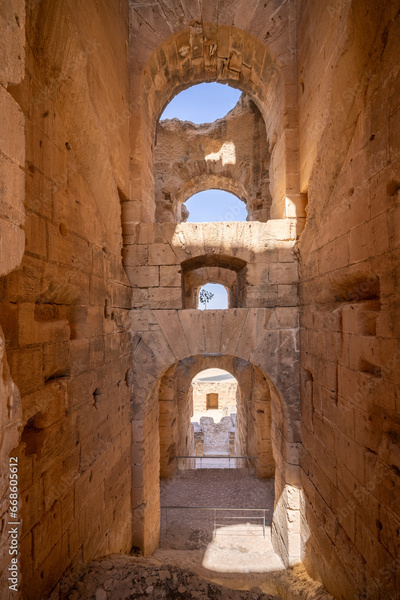El Jem Coliseum. The largest Roman amphitheater in Africa. Unesco World Heritage.