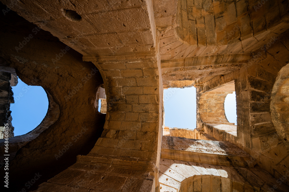 El Jem Coliseum. The largest Roman amphitheater in Africa. Unesco World Heritage.