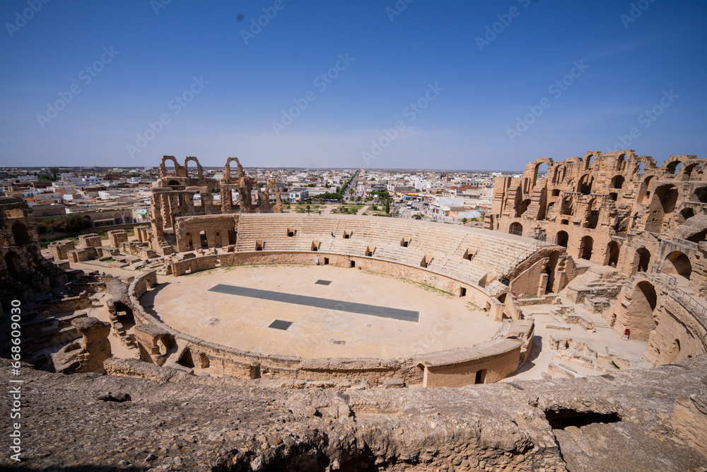 El Jem Coliseum. The largest Roman amphitheater in Africa. Unesco World Heritage.