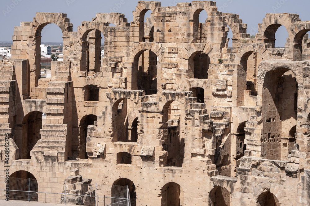 El Jem Coliseum. The largest Roman amphitheater in Africa. Unesco World Heritage.
