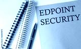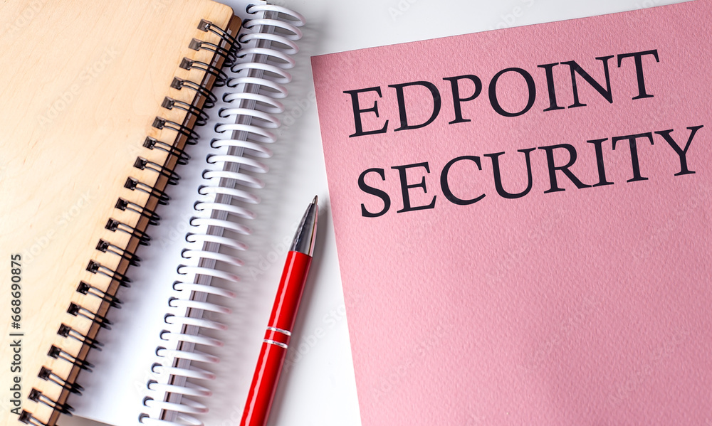 ENDPOINT SECURITY word on the pink paper with office tools on white background