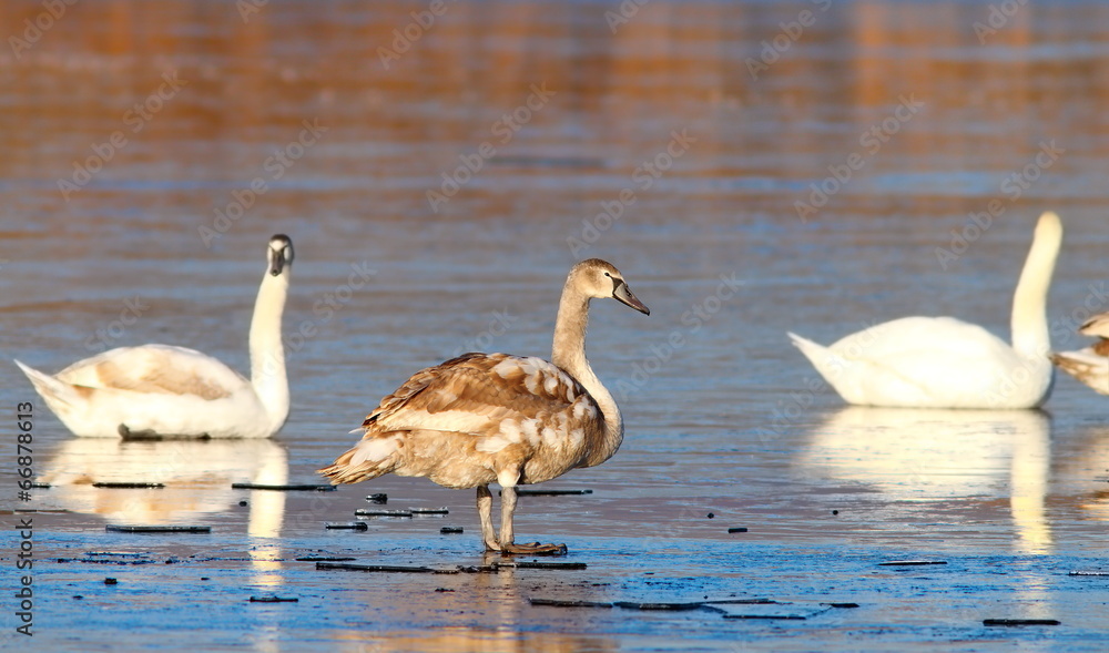juvenile mute swan winter image