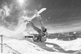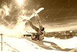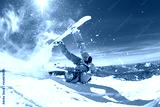Real snowboarder falls at offpiste ski slope. ski safety concept
