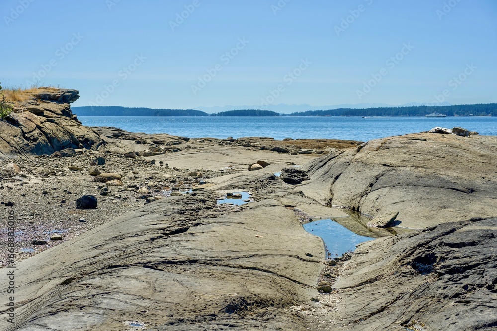 Rock shore on Russell Island, Gulf Islands National Park, BC, Canada