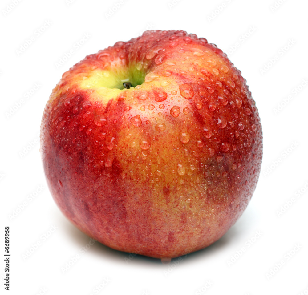 wet red apple with water drops