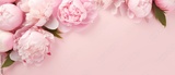 Top view Mother's Day decorations concept, photo of trendy gift boxes with ribbon bows and tulips on isolated pastel pink background with copy space for text