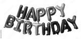 Colorful foil balloon of text HAPPY BIRTHDAY isolated on white. Birthday wish.