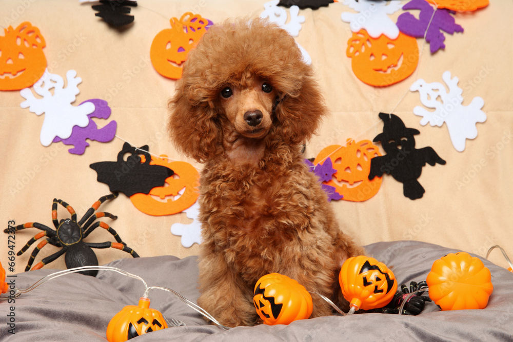 Red toy poodle puppy is among the themed accessories for Halloween