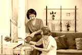 Caregiver help elderly woman looking for something that she forgot it in drawers.
