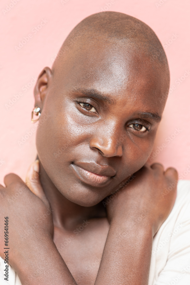 bald, beautiful young african woman with shaved head
