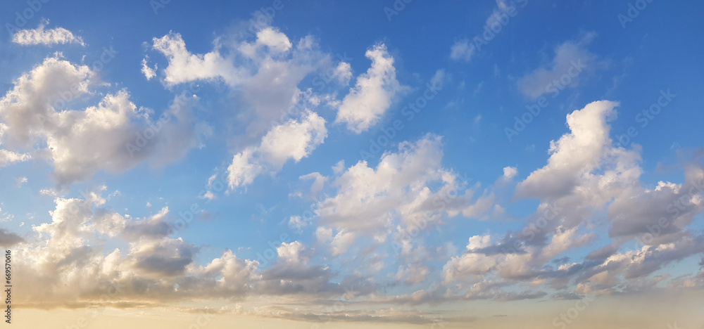 White cloud on blue sky. Panoramic idyllic atmosphere blue sky with clouds, horizon landscape skyline background