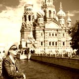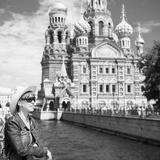 Young female tourist travels in Saint Petersburg, Russia