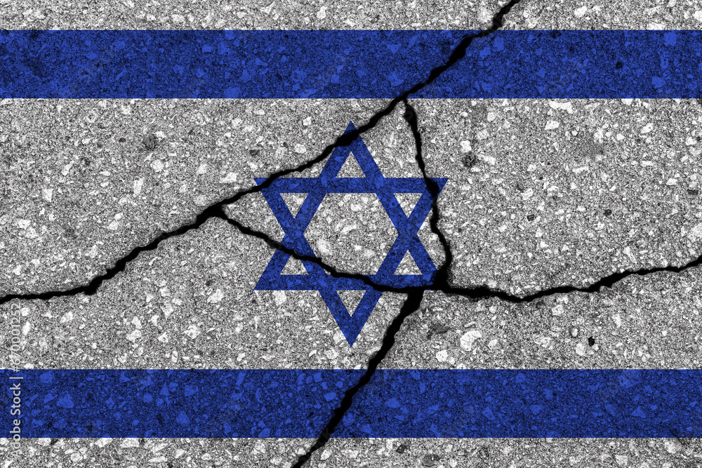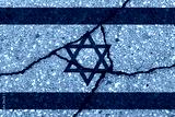 Israel flag on cracked concrete wall. The concept of crisis, default, economic collapse, pandemic, conflict, terrorism, war or other problems in the country.