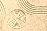 Zen garden Japanese top view, Circle round sand background, Meditation of Buddhism