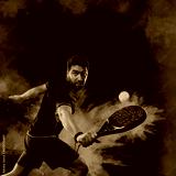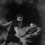Padel Tennis Player with Racket in Hand. Paddle tenis, on a blue background. Download in high resolution.