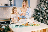Mother and her daughter cooking Christmas ginger biscuits at the kitchen