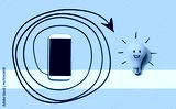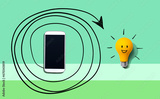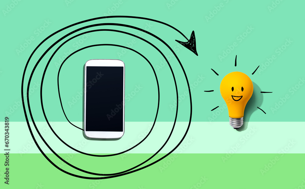 Creativity, inspiration, idea concept with light bulb and smartphone - Flat lay