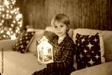 Beautiful blond child, young school boy, writing homework for school in a decorated home, drinking milk and eating cookies.