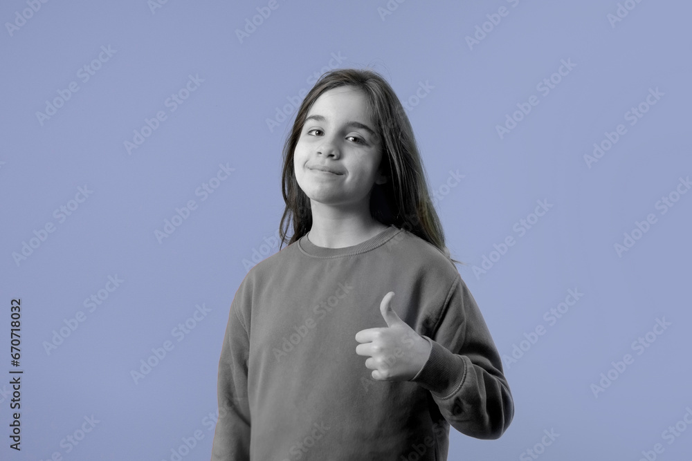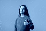 A teenage girl in a bad mood creates the appearance of a positive mood. concept