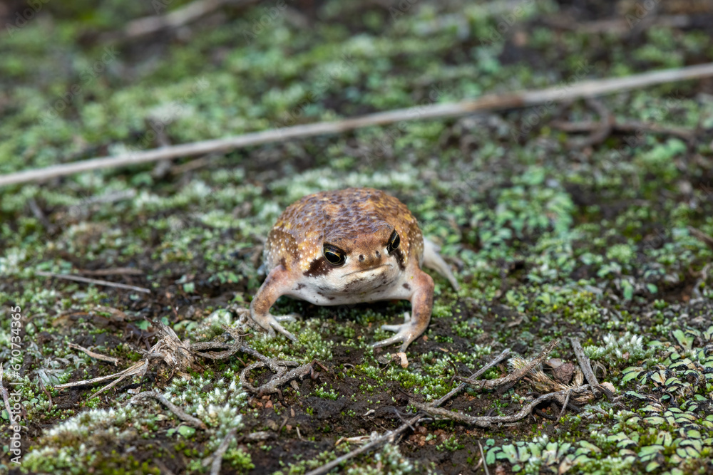 A cute Bushveld rain frog, also known as the common rain frog (Breviceps adspersus), in the wild