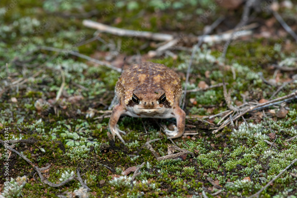 A cute Bushveld rain frog, also known as the common rain frog (Breviceps adspersus), in the wild