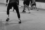 Futsal players rivals in action. Sport mini soccer futbol sala concept.