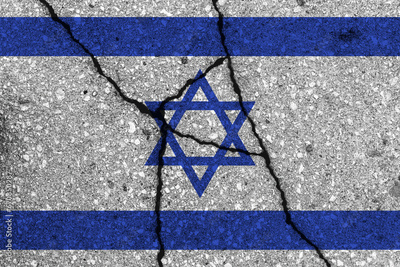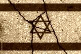 Israel flag on cracked concrete wall. The concept of crisis, default, economic collapse, pandemic, conflict, terrorism, war or other problems in the country.