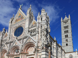 Facade of Cathedral of SIENA in Italy and Bell Tower