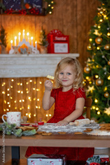 Beautiful children, blond kids, siblings, playing in decorated home for Christmas, enjoying holidays
