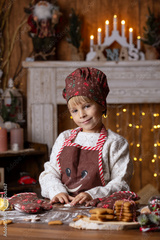 Beautiful children, blond kids, siblings, playing in decorated home for Christmas, enjoying holidays