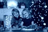 Beautiful children, blond kids, siblings, playing in decorated home for Christmas, enjoying holidays